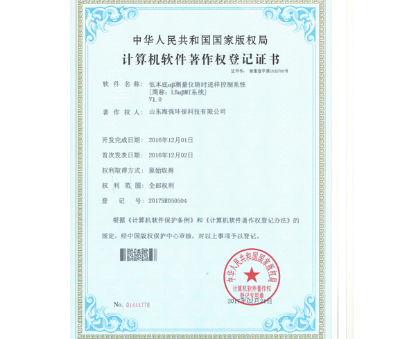 專利證書(shū):低本底α、β測(cè)量?jī)x進(jìn)