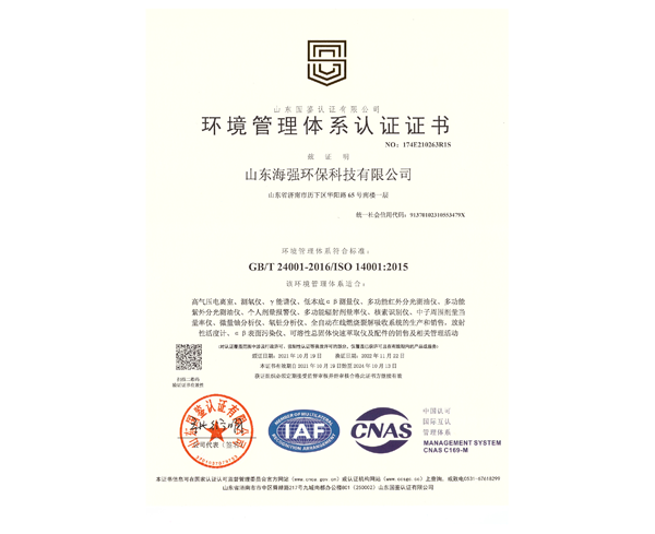 環(huán)境管理體系認(rèn)證證書(shū)